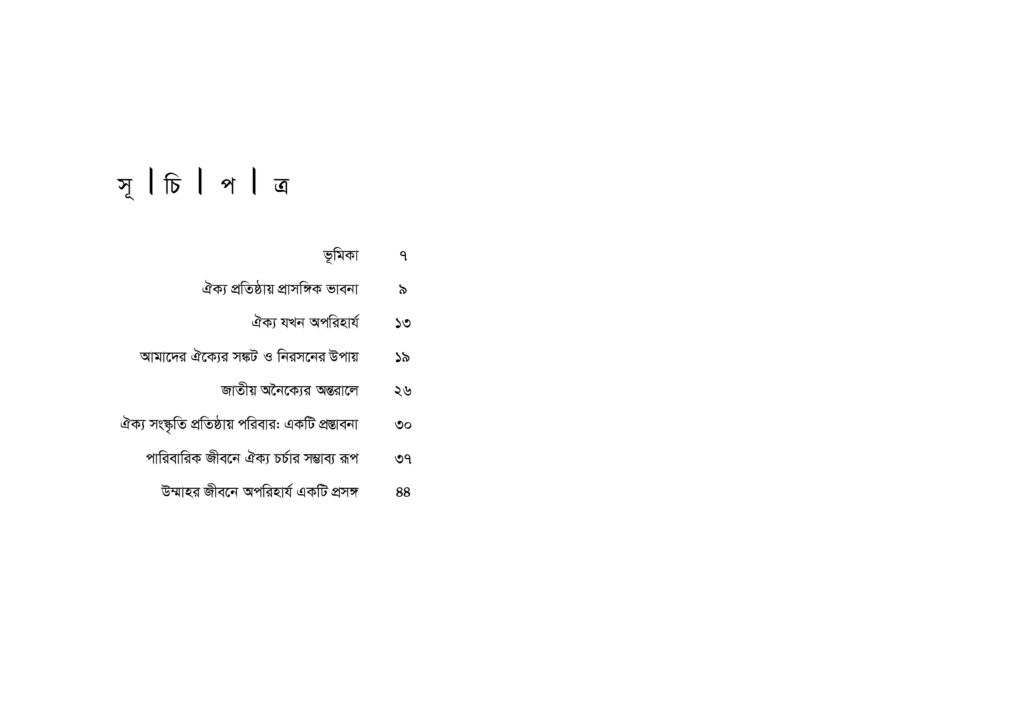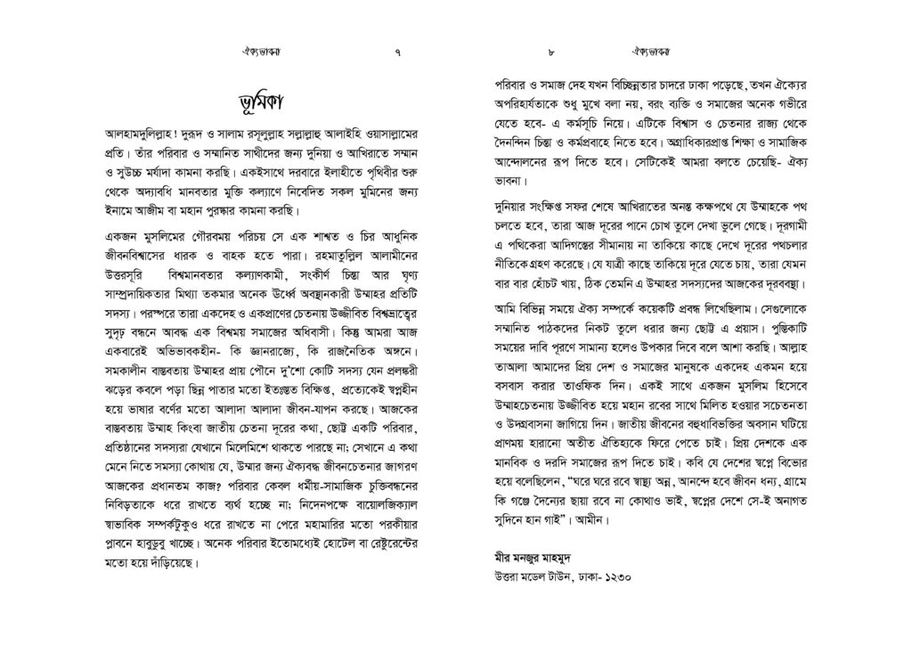 এমনতর ঐক্য ভাবনাকে উপজিব্য করে লেখকের বিভিন্ন সময়ে লেখা বেশ কয়েকটি প্রবন্ধের সংকলন মূলত এ পুস্তিকাটি যা সময়ের নিরিখে পরিমার্জন ও পুনর্বর্ধন করা হয়েছে। পুস্তিকাটি মুসলিম উম্মাহ’র ঐক্য ভাবনাকে এগিয়ে নিতে পাঠকবৃন্দকে অনুপ্রাণিত করবে আশা করা যায়।